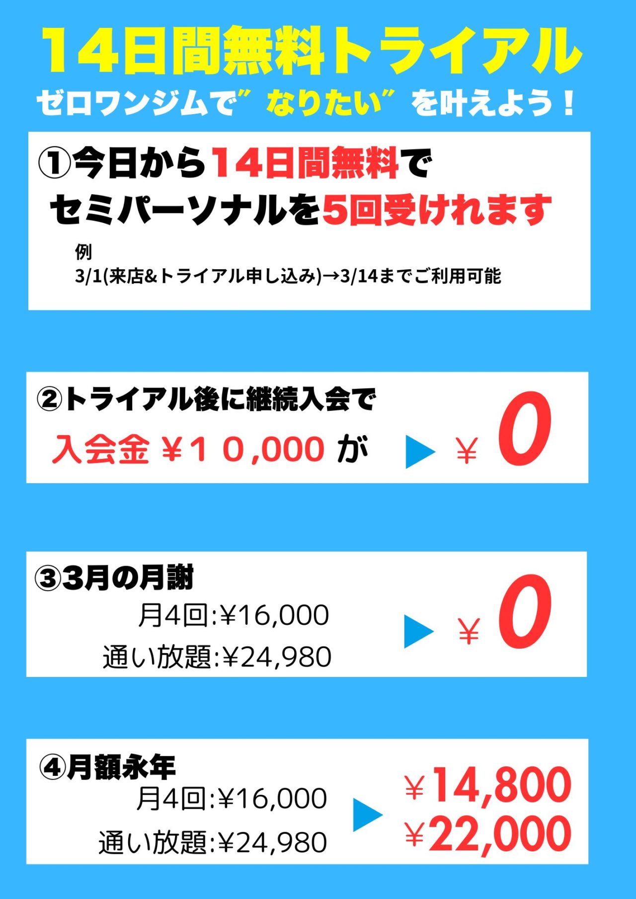 ※トライアル期間内にご入会の場合、入会金無料