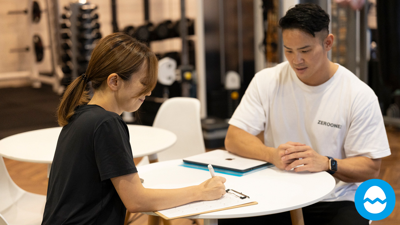 現在の生活スタイルをお伺いした上で、ゼロワンジムならではの、運動を習慣化するための楽しいトレーニングとアドバイスをさせて頂きますので、お役に立てていただけましたら幸いです。